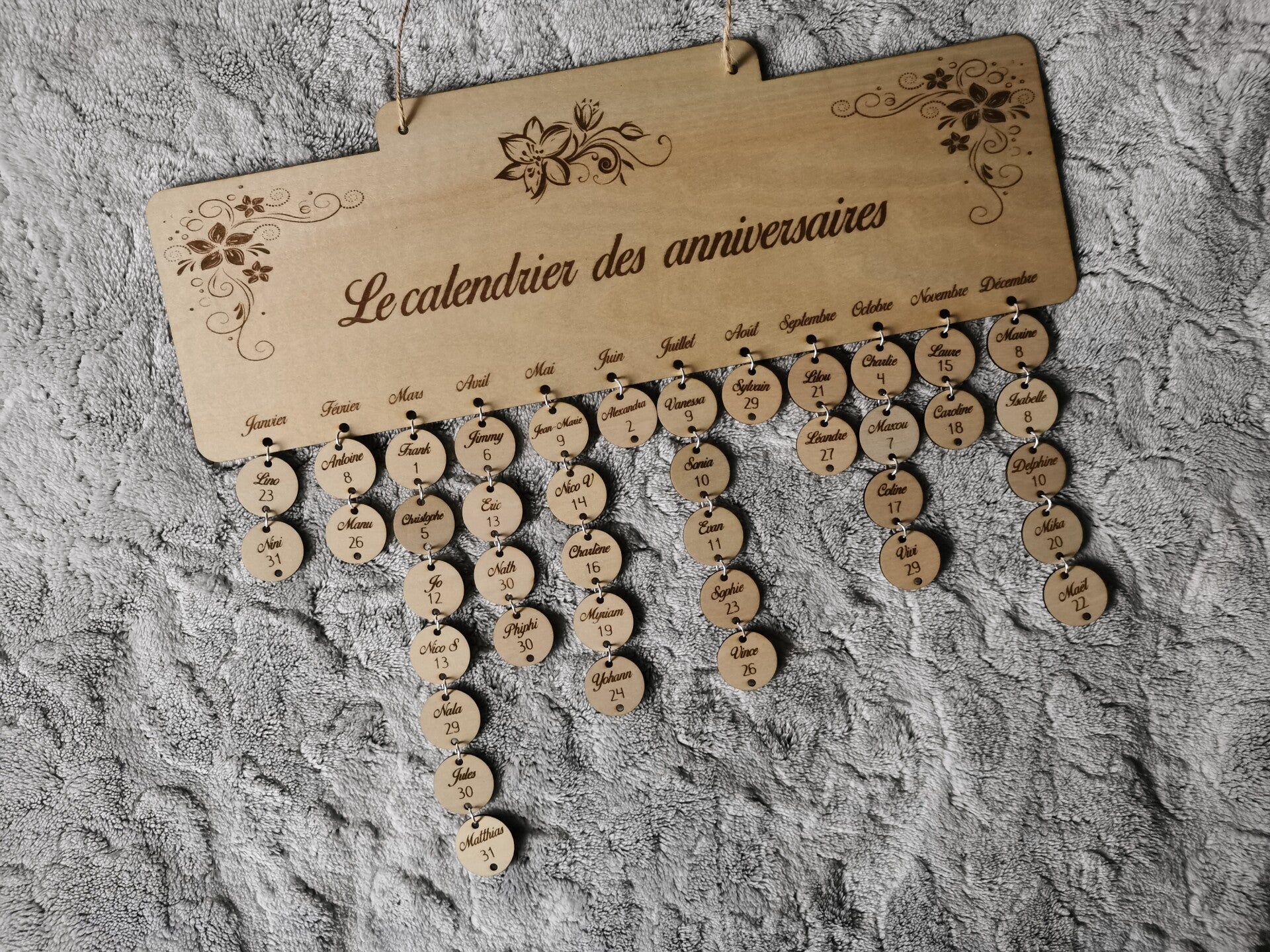 Le calendrier est réalisé en contreplaqué de peuplier de 3 millimètre d'épaisseur.