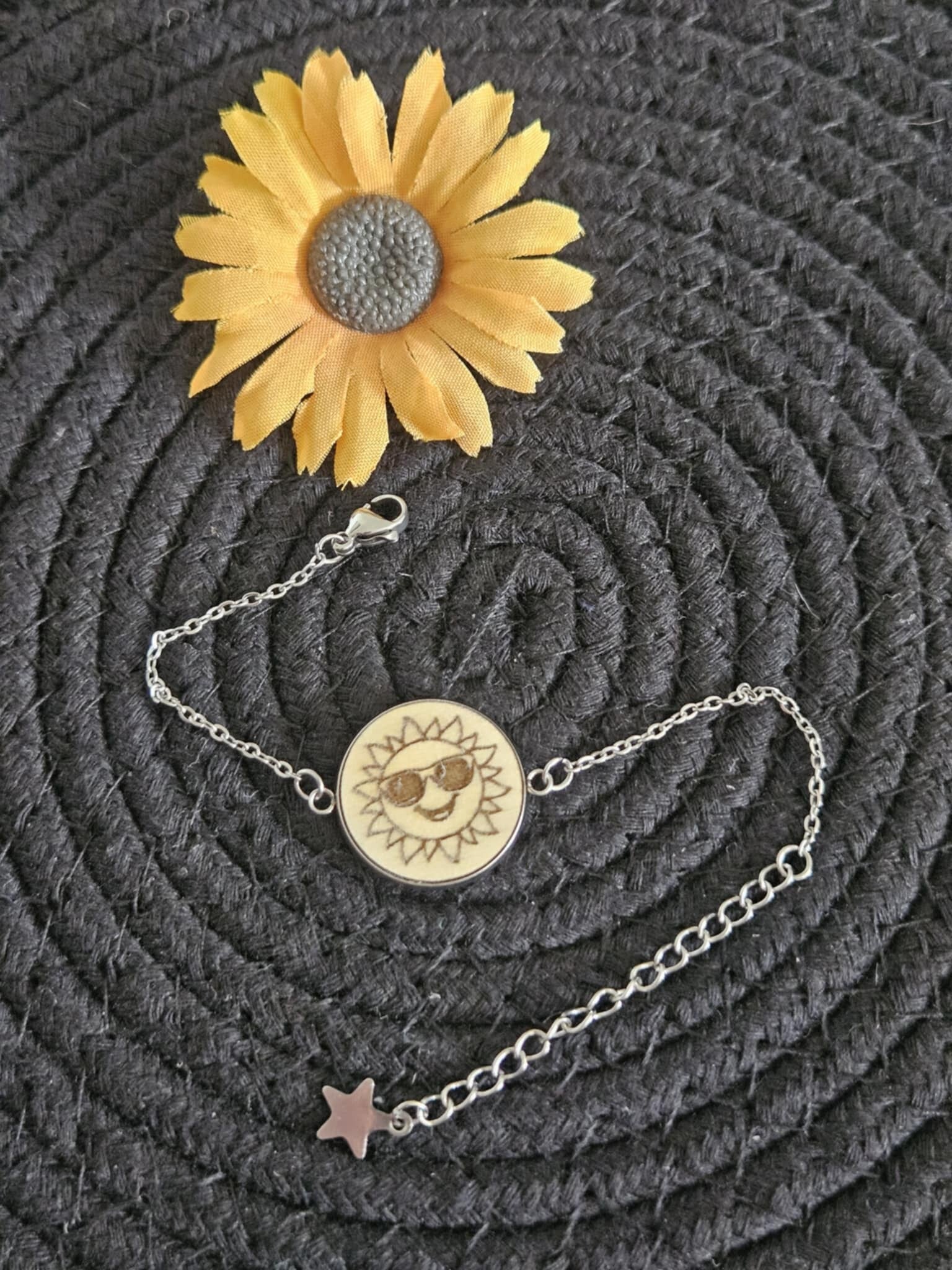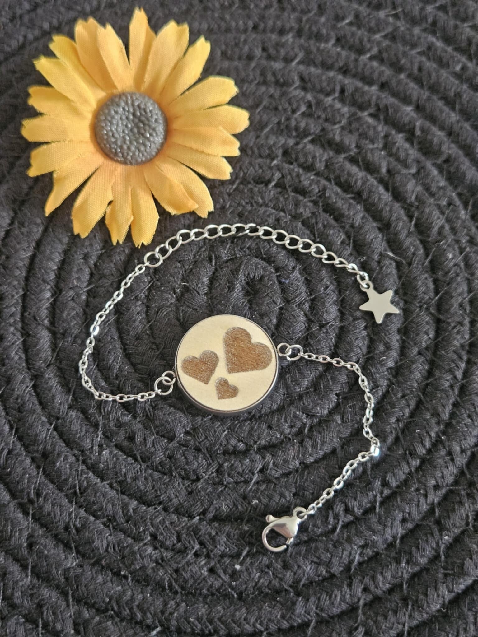 Optez pour l'élégance et la personnalisation avec ce bracelet souple en acier inoxydable, sublimé par un médaillon en bois gravé.