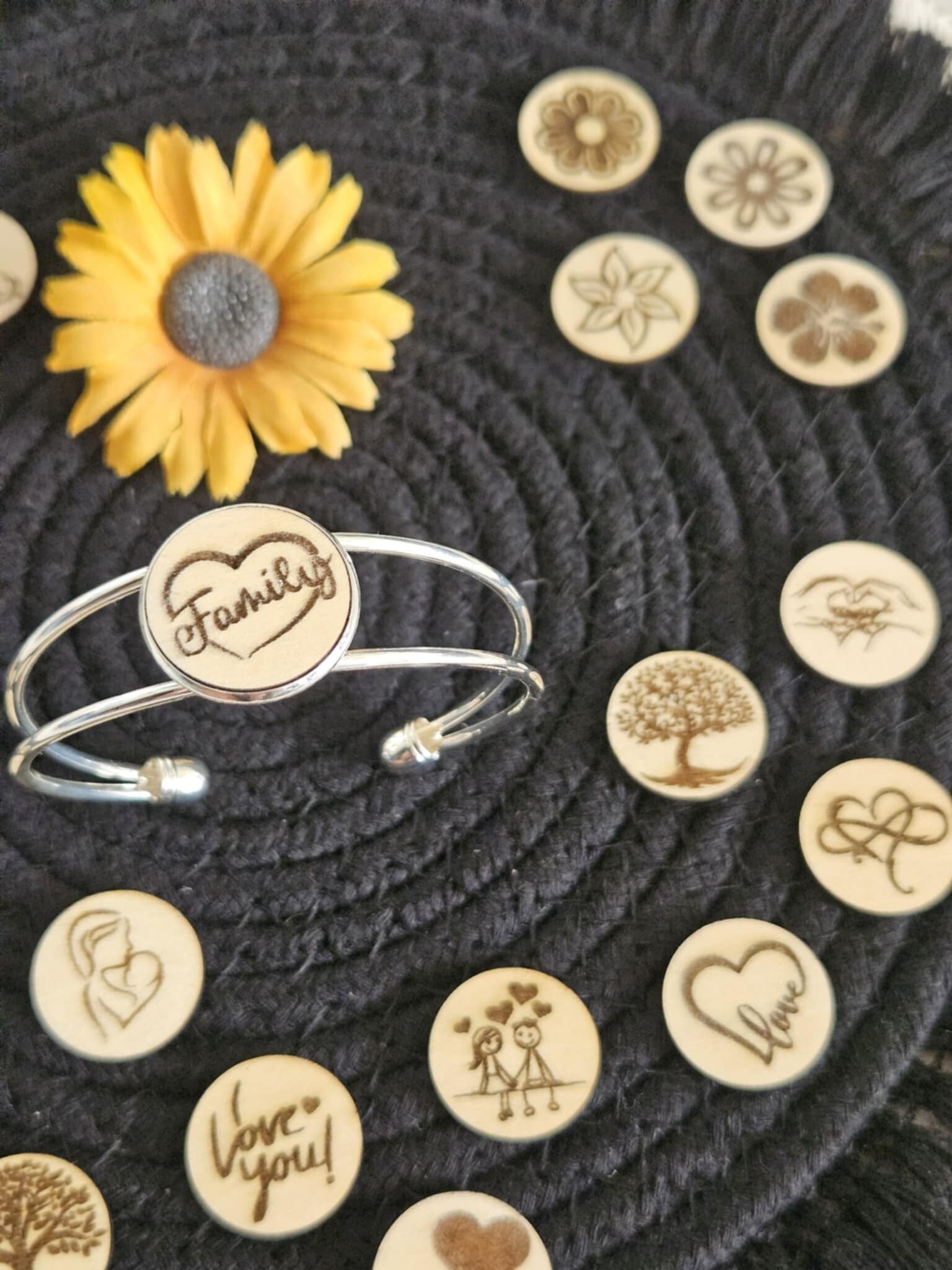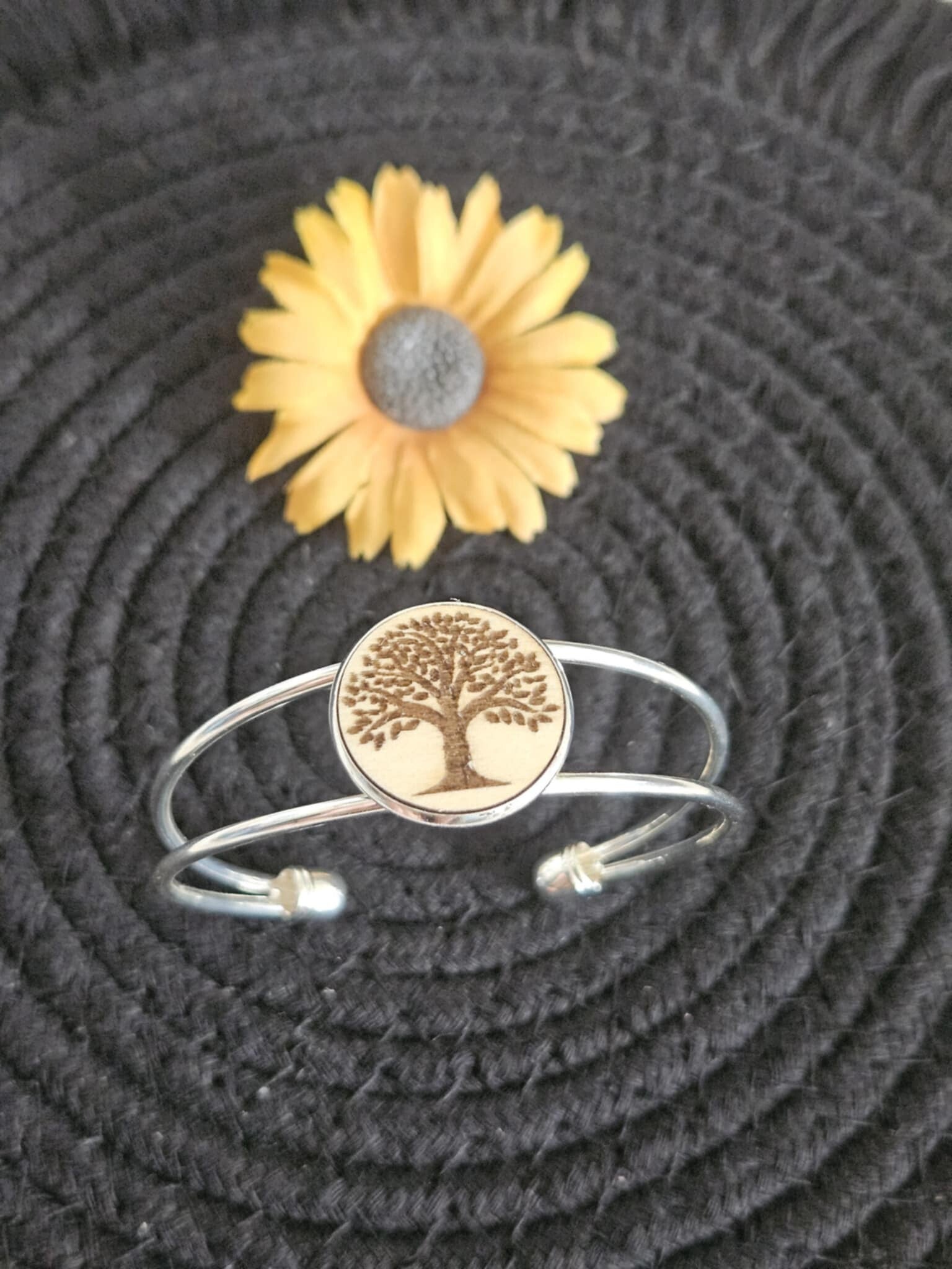 Découvrez l'élégance intemporelle et le charme naturel réunis dans ce bracelet, sublimé par un médaillon en bois gravé.